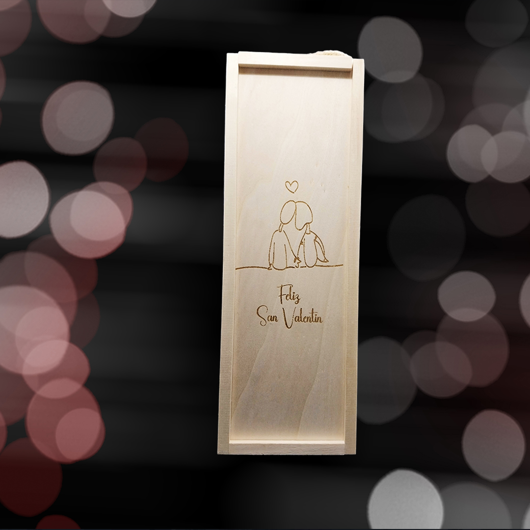 Personaliza tu Kit de 1 copa de cava grabadas con estuche de madera personalizado Modelo San Valentín con fotos y textos, personalizada la copa y la caja de madera, con mensajes, dedicatorias, agradecimientos, y mucho más. Haz un regalo único y original donde marcarás la diferencia.