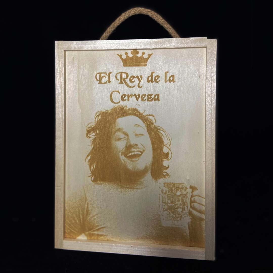 A partir de aquí podrás personalizar tu caja de madera con fotos y textos y ya habrás terminado tu Kit de jarra de cerveza grabada con estuche de madera Modelo Rey de la Cerveza..